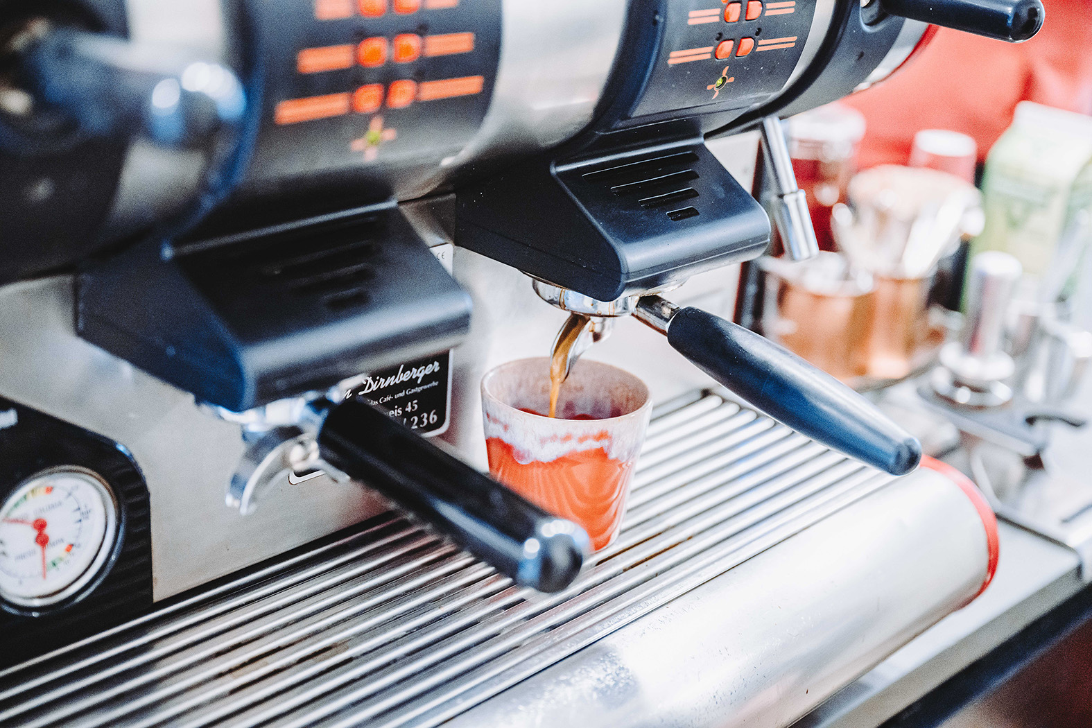 Am zentralen Tresen wird gekocht, ausgeschenkt und serviert, während Gäste Platz nehmen und den Mitarbeiter:innen über die Schulter blicken können. So entsteht eine lebendige, ungezwungene Atmosphäre, in der Handwerk sichtbar und Genuss unmittelbar erlebbar wird.